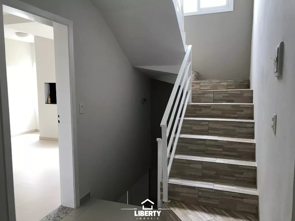 O imóvel de três andares possui três quartos, sendo um deles suíte com sacada, um banheiro social, sala de estar, garagem com churrasqueira, cozinha e área de serviço. A escada que interliga os andares, é antiderrapante trazendo muita segurança aos moradores.
