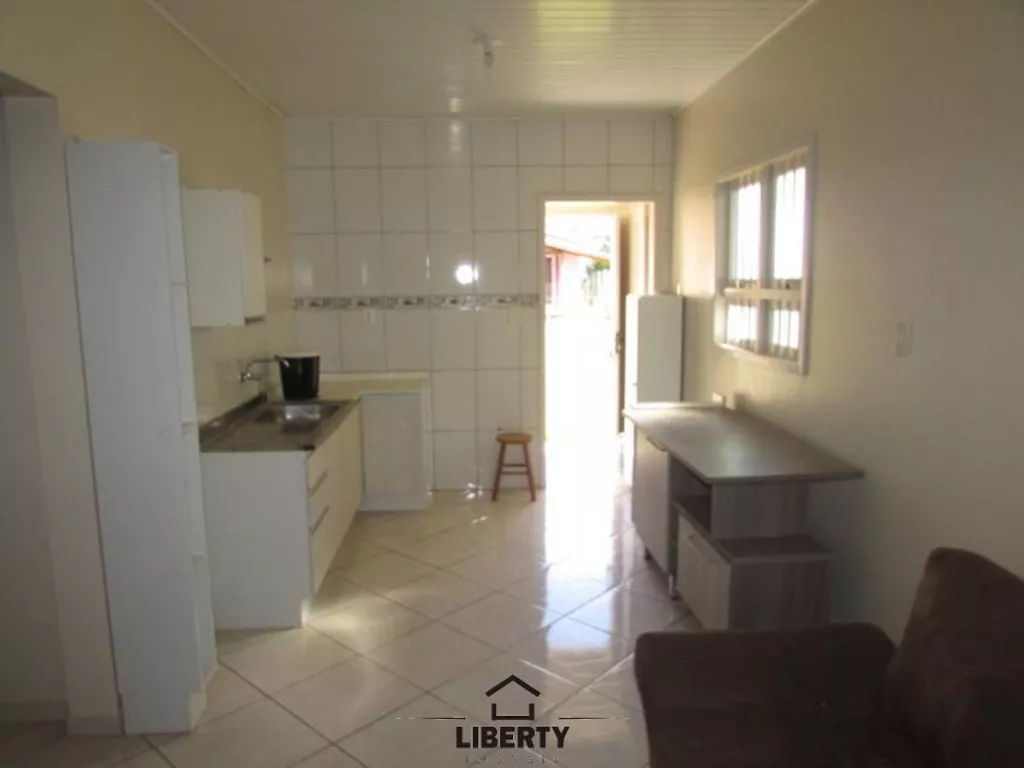 O imóvel possui 01 quarto, sala e cozinha integradas, 01 banheiro e lavanderia. Conta também com um abrigo para carro. Dos móveis que estão nas fotos, somente a pia e o balcão da cozinha permanecem na casa.