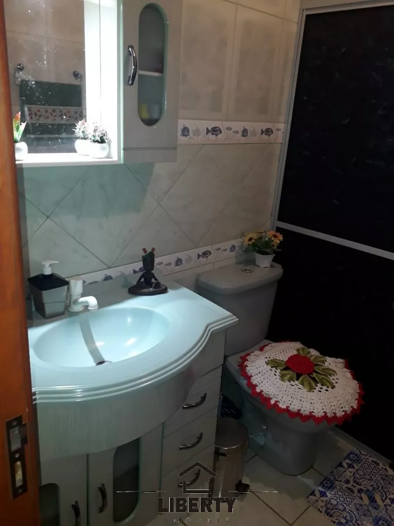O imóvel com 54m² conta com dois quartos, banheiro, sala de estar/jantar, cozinha, área de serviço e garagem com vaga para dois carros.