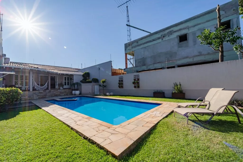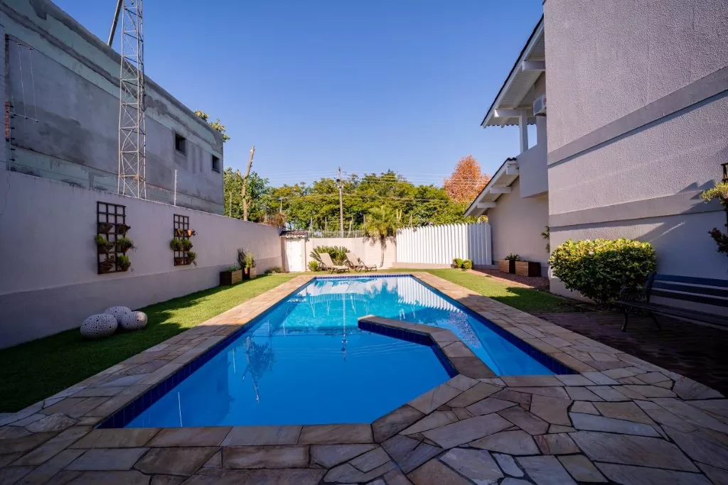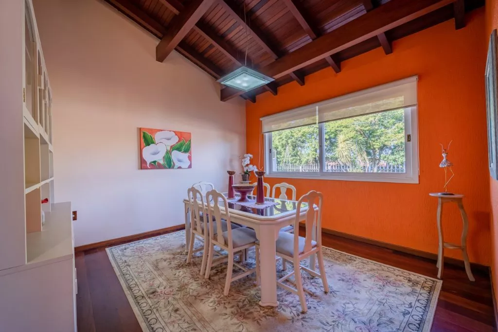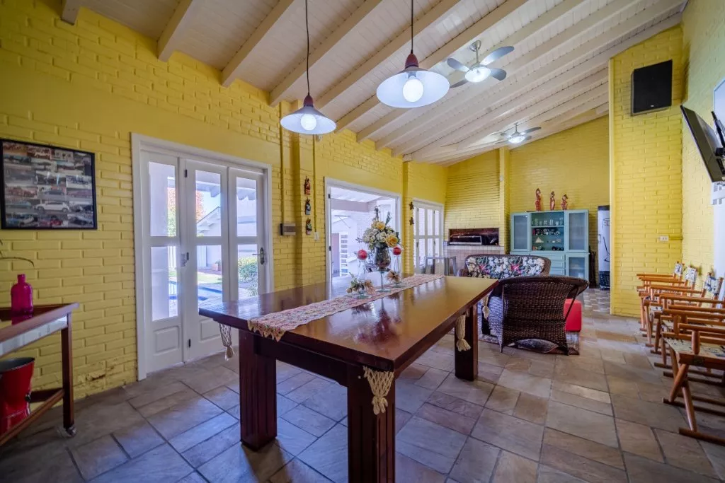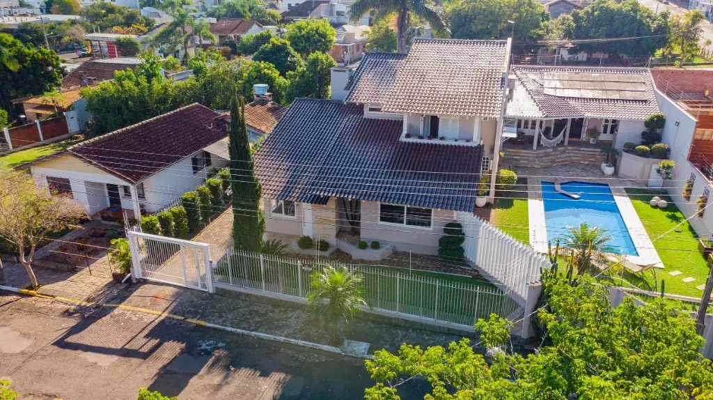 Essa casa é ideal para uma família grande, que adora compartilhar de bons momentos em família. Com aproximadamente 450m² de muito aconchego e sofisticação, ela conta com 3 quartos, sendo uma suíte com hidromassagem e closet, banheiro social, sala de estar com lareira, sala de jantar, cozinha, lavanderia e um lindo espaço gourmet com churrasqueira, banheiro e piscina com aquecimento solar.