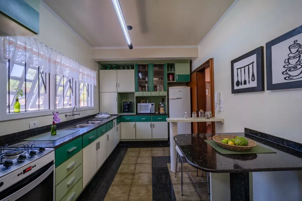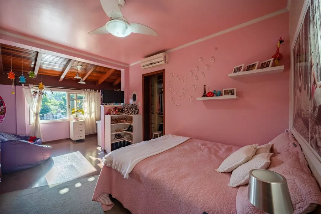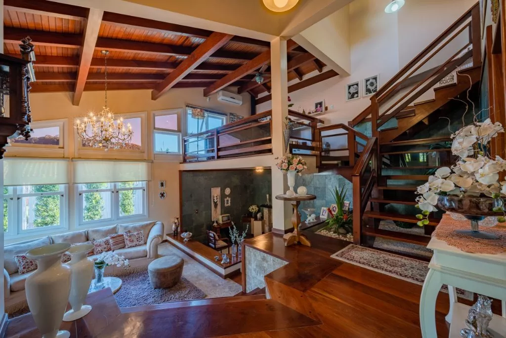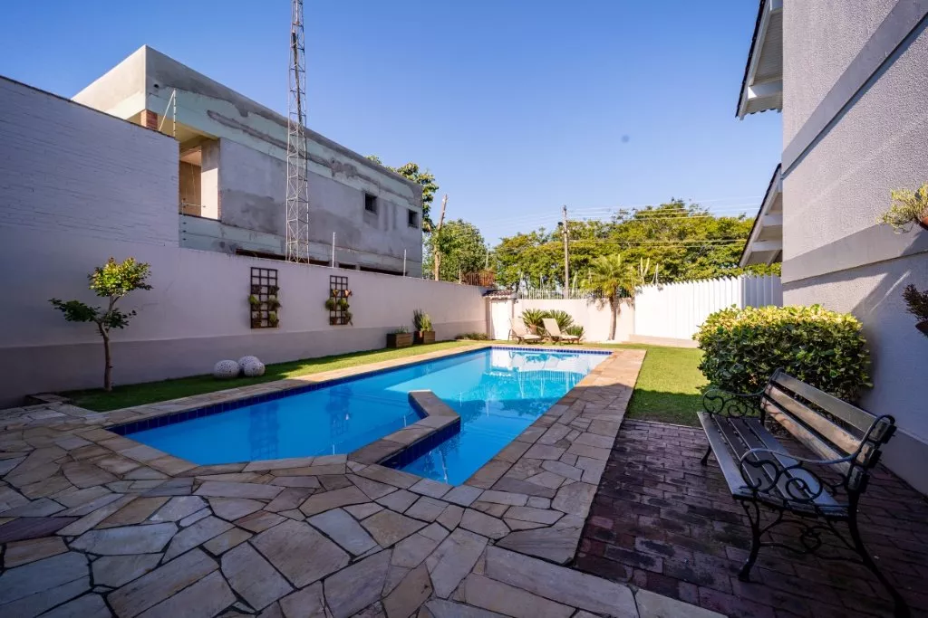 Essa casa é ideal para uma família grande, que adora compartilhar de bons momentos em família. Com aproximadamente 450m² de muito aconchego e sofisticação, ela conta com 3 quartos, sendo uma suíte com hidromassagem e closet, banheiro social, sala de estar com lareira, sala de jantar, cozinha, lavanderia e um lindo espaço gourmet com churrasqueira, banheiro e piscina com aquecimento solar.