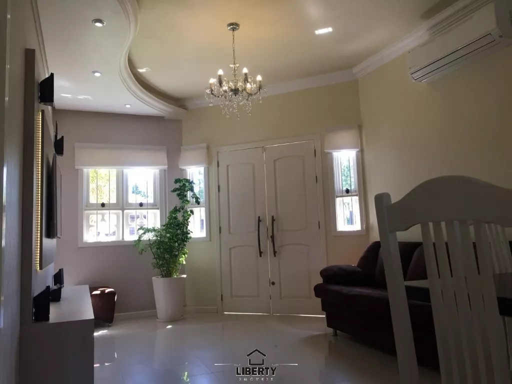 A residência semi mobiliada conta com 03 quartos, sendo 01 suíte com banheira de hidromassagem, 01 banheiro social, sala de estar, sala de jantar, cozinha, quiosque com lavanderia e banheiro.