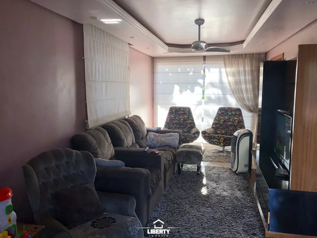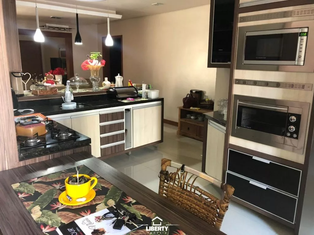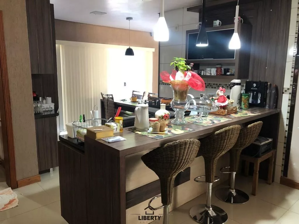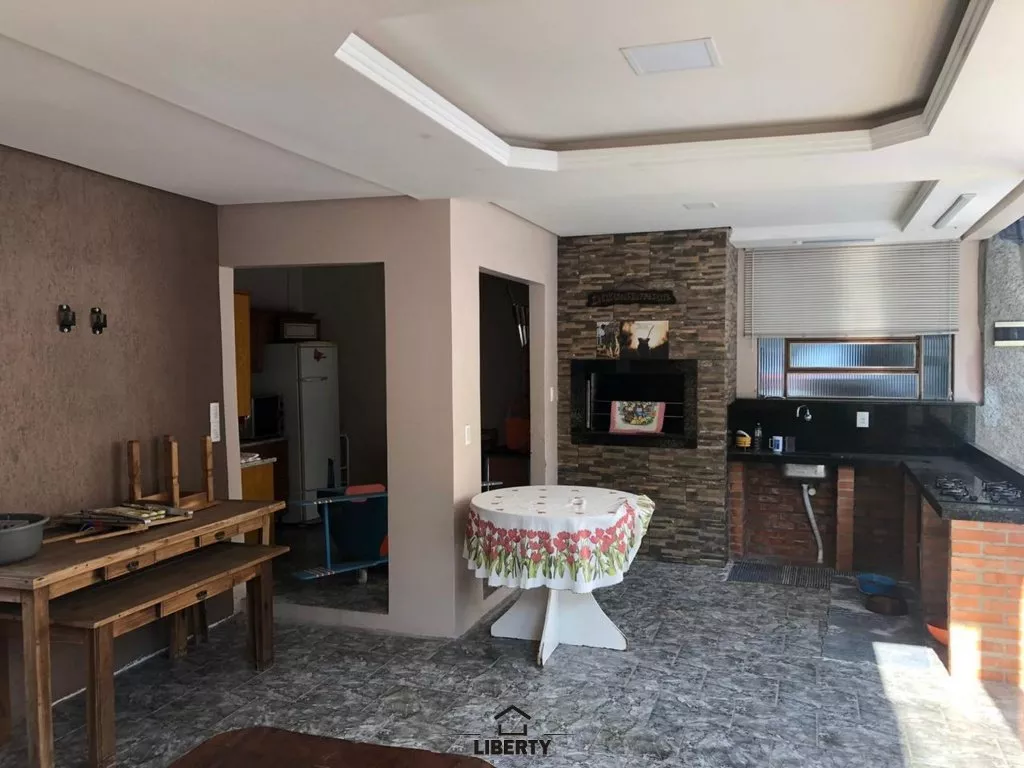 O imóvel conta com 04 quartos, 02 banheiros, cozinha, sala de jantar e estar, lareira, salão de festas com churrasqueira e garagem com espaço para dois carros.